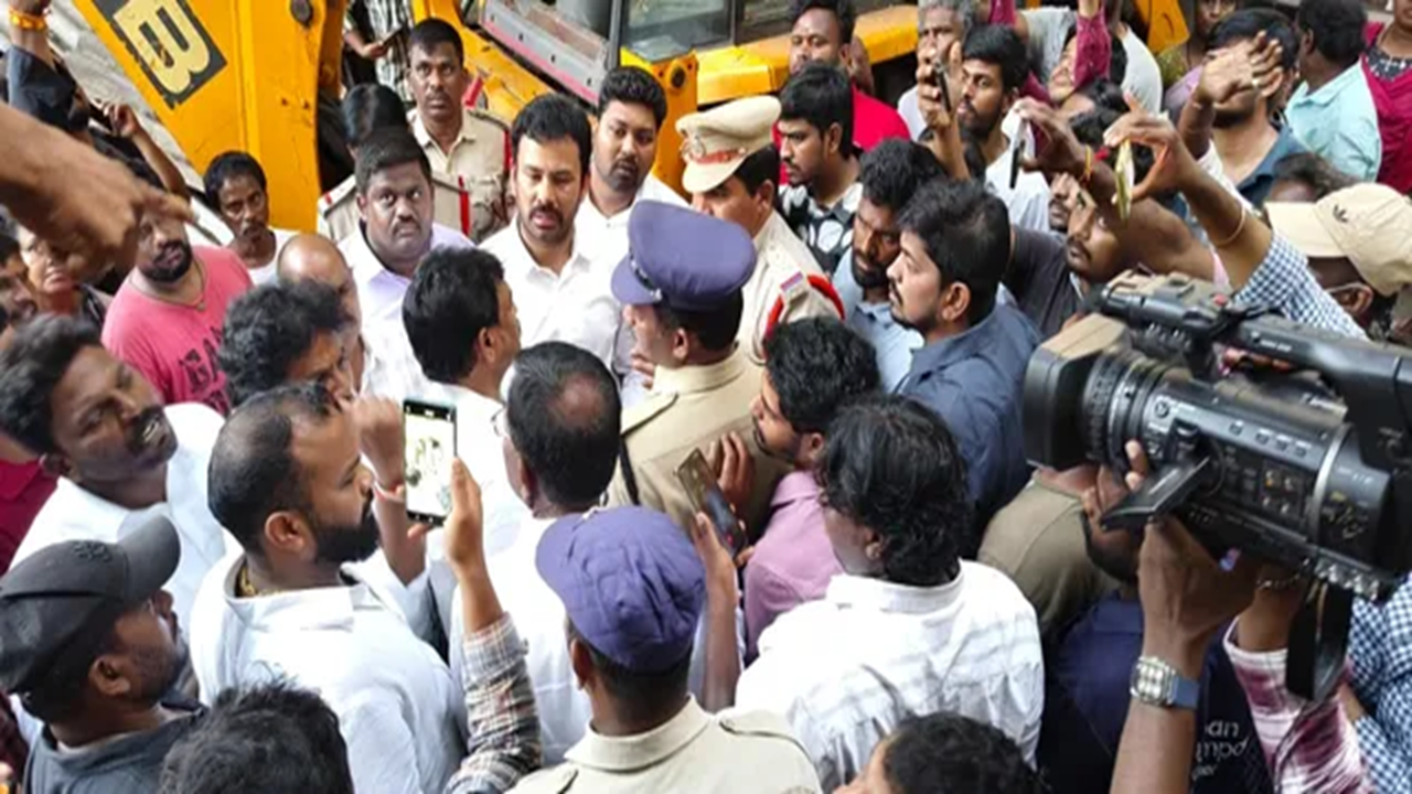 విశాఖలో జీవీఎంసీ అధికారులు రోడ్డు పక్కన ఉన్న బడ్డీలు, తోపుడు బండ్లను నోటీసులు లేకుండా తొలగించడాన్ని వైసీపీ విశాఖ జిల్లా అధ్యక్షుడు కె. కె రాజు శనివారం తీవ్రంగా ఖండించారు. ఈ చర్యను అడ్డుకునేందుకు ఆయన స్థానికులతో కలిసి శనివారం సీతమ్మధారలోని ఎస్ఎఫ్ఎస్ పాఠశాల వద్ద నిరసన తెలిపారు. చిరు వ్యాపారుల కడుపు కొట్టే ప్రభుత్వ నిర్ణయాన్ని వెంటనే వెనక్కి తీసుకోవాలని, లేదంటే పోరాటం తప్పదని ఆయన హెచ్చరించారు.